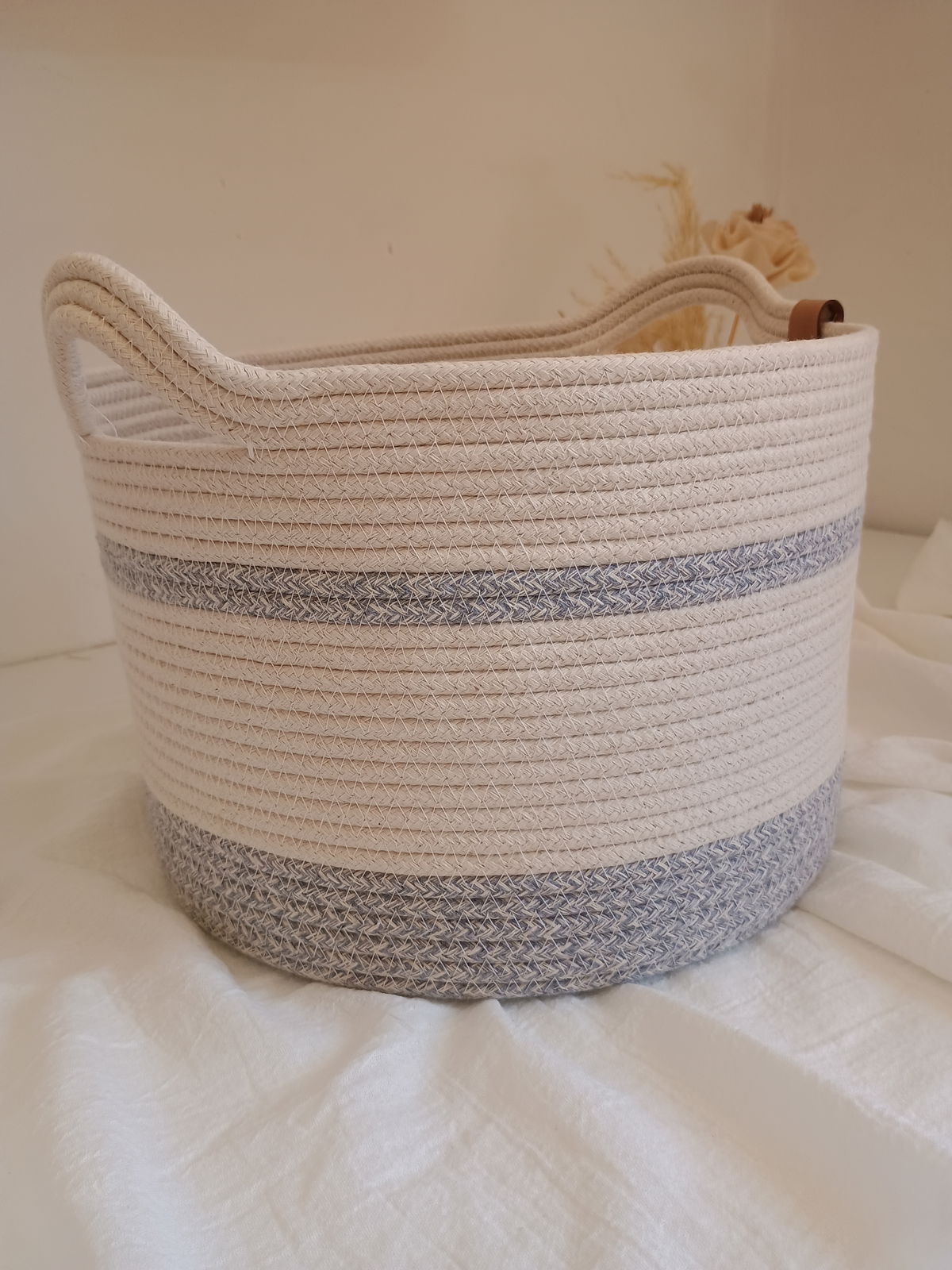 Cesto organizador de soga de algodón jaspeado gris