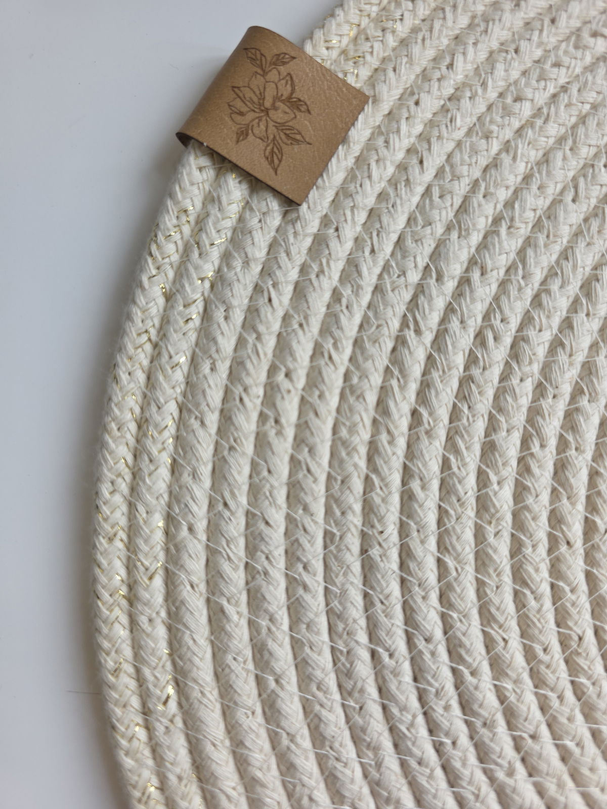Individuales de cordón de algodón y lurex dorado de 33 cm aprox.