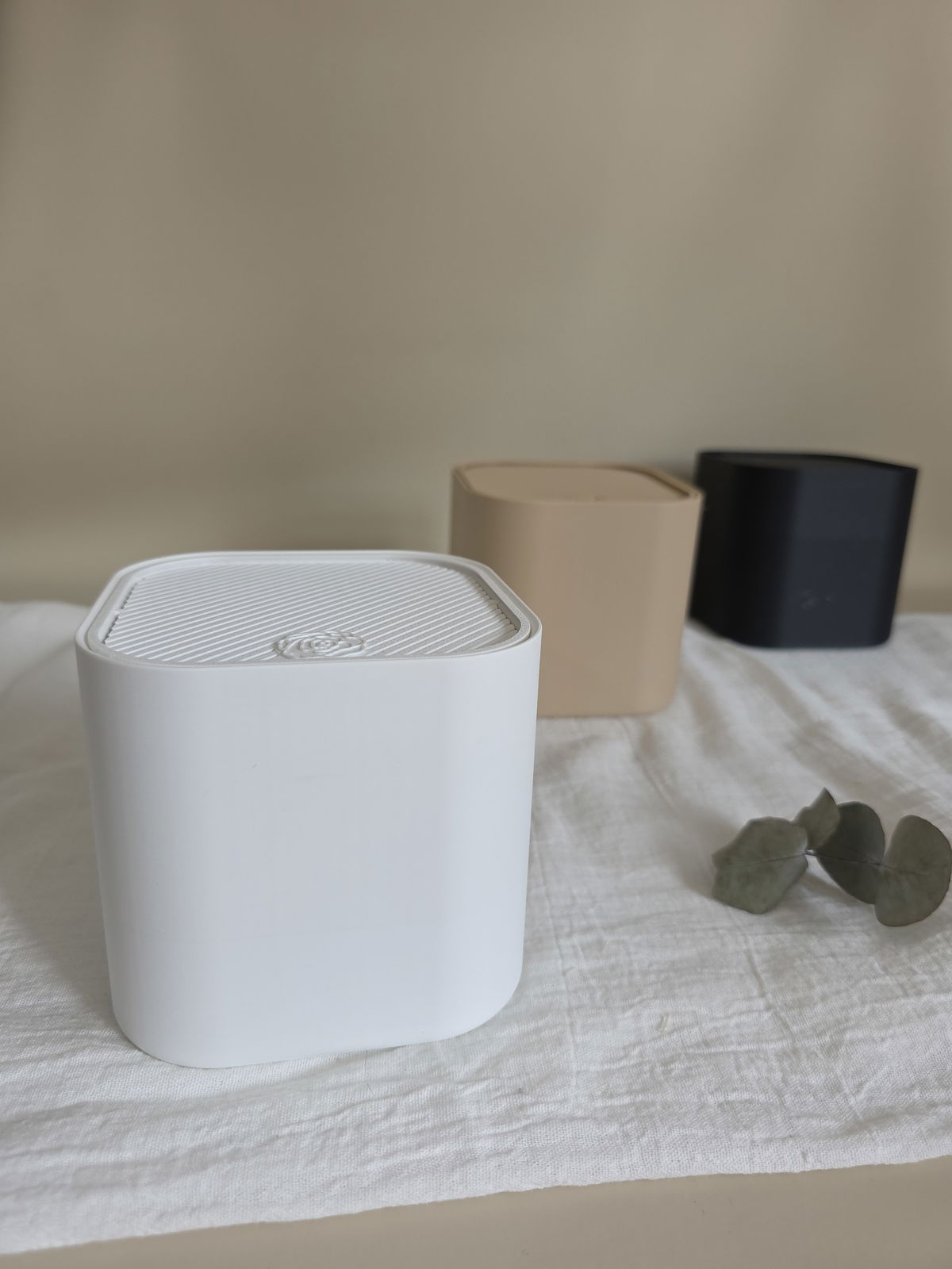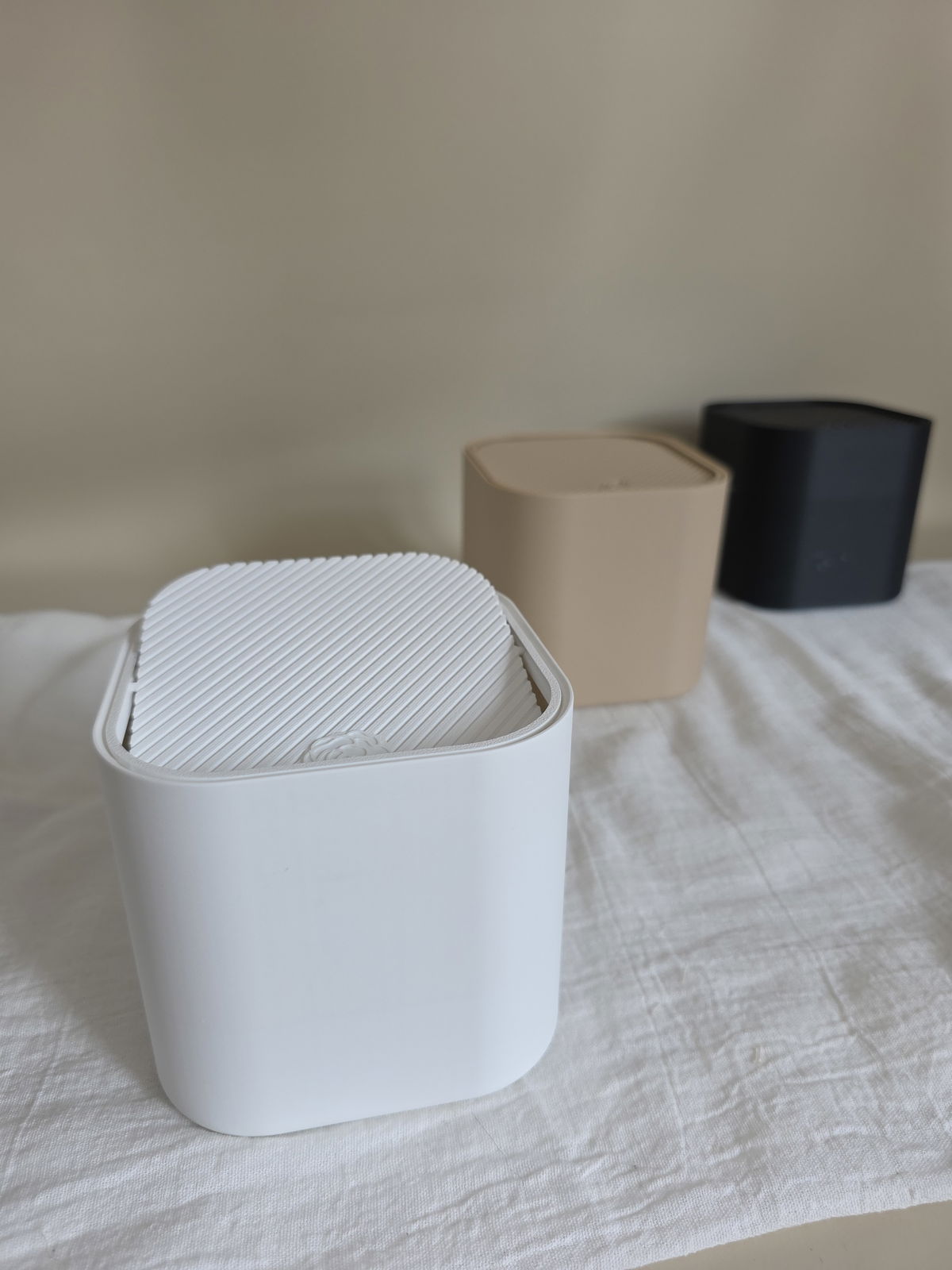 Cesto para escritorio realizado en impresion 3D, fabricado con PLA (es un poliester termoplastico biodegradable, derivado de fuentes renovables)