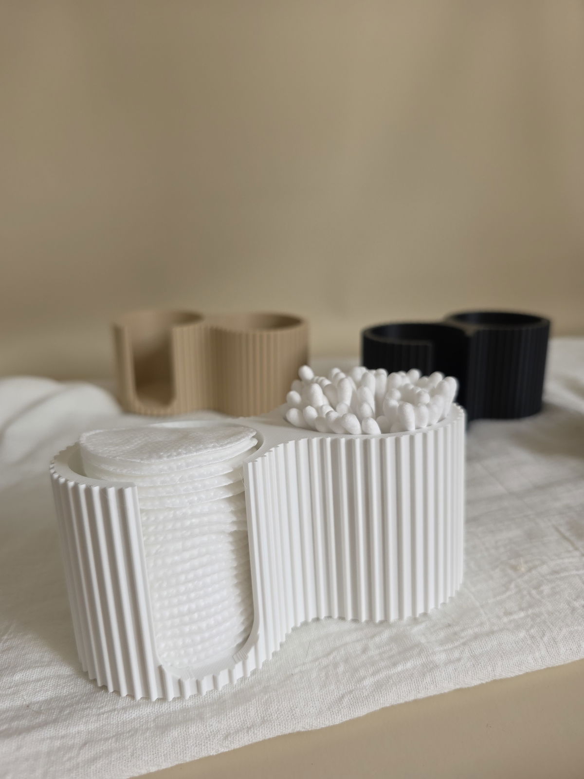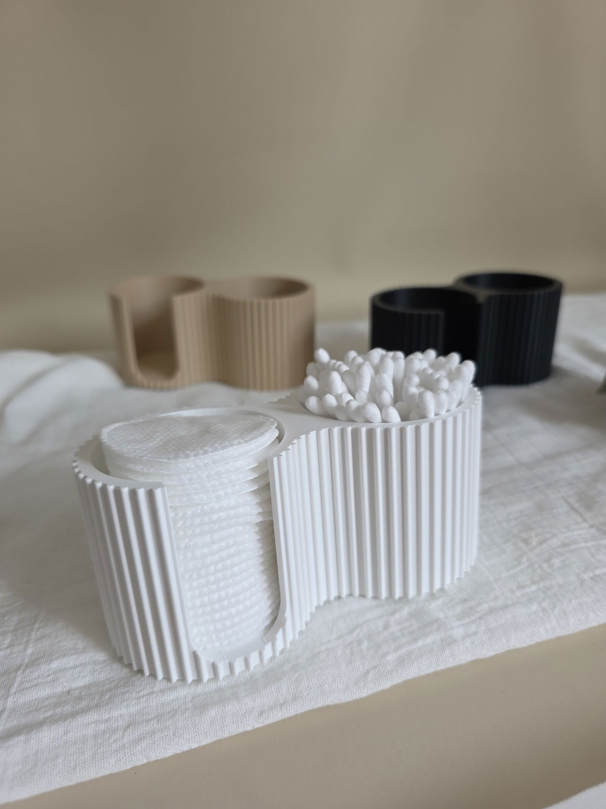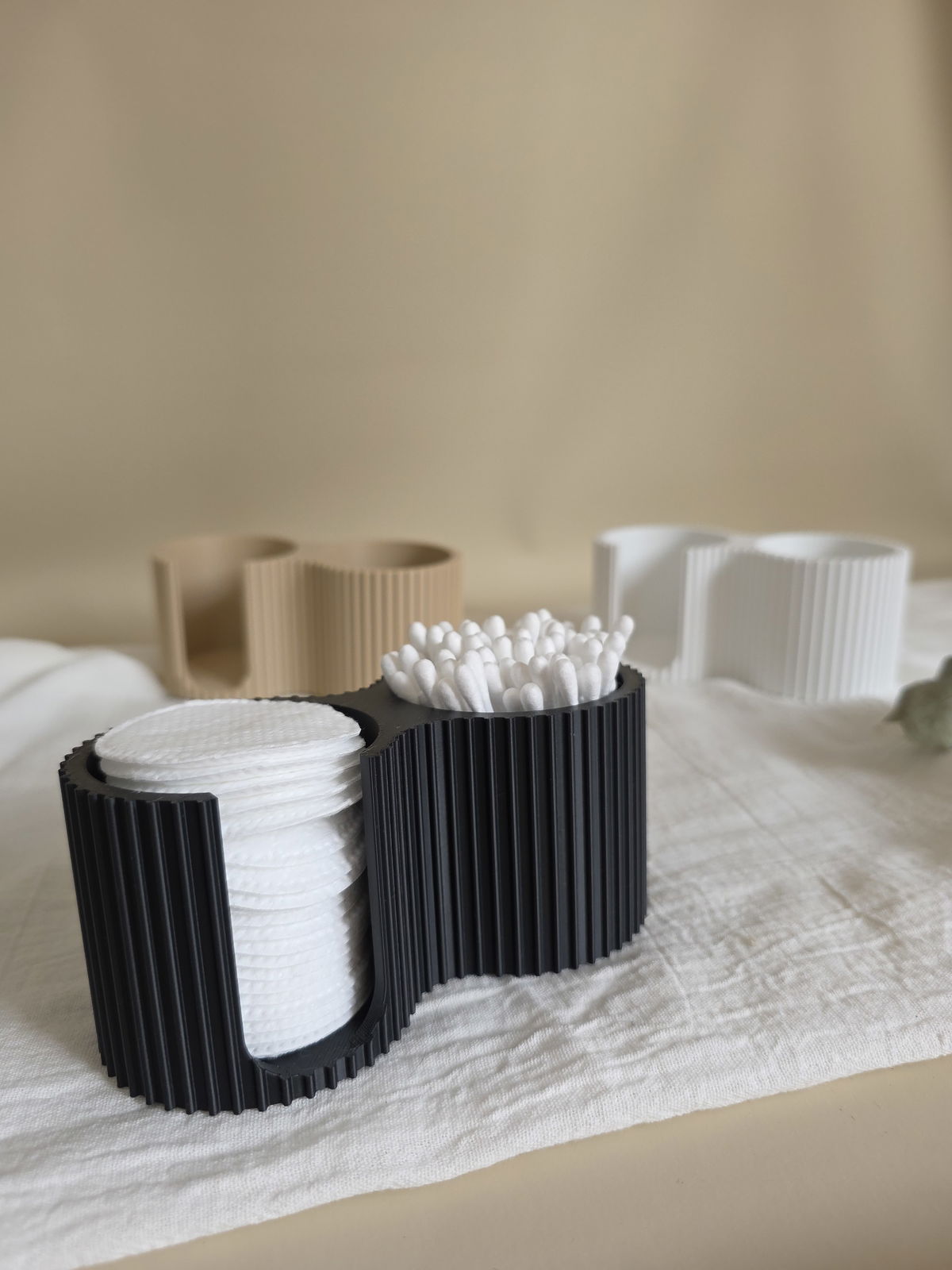Organizador dúo realizado en impresion 3D, fabricado con PLA (es un poliester termoplastico biodegradable, derivado de fuentes renovables)