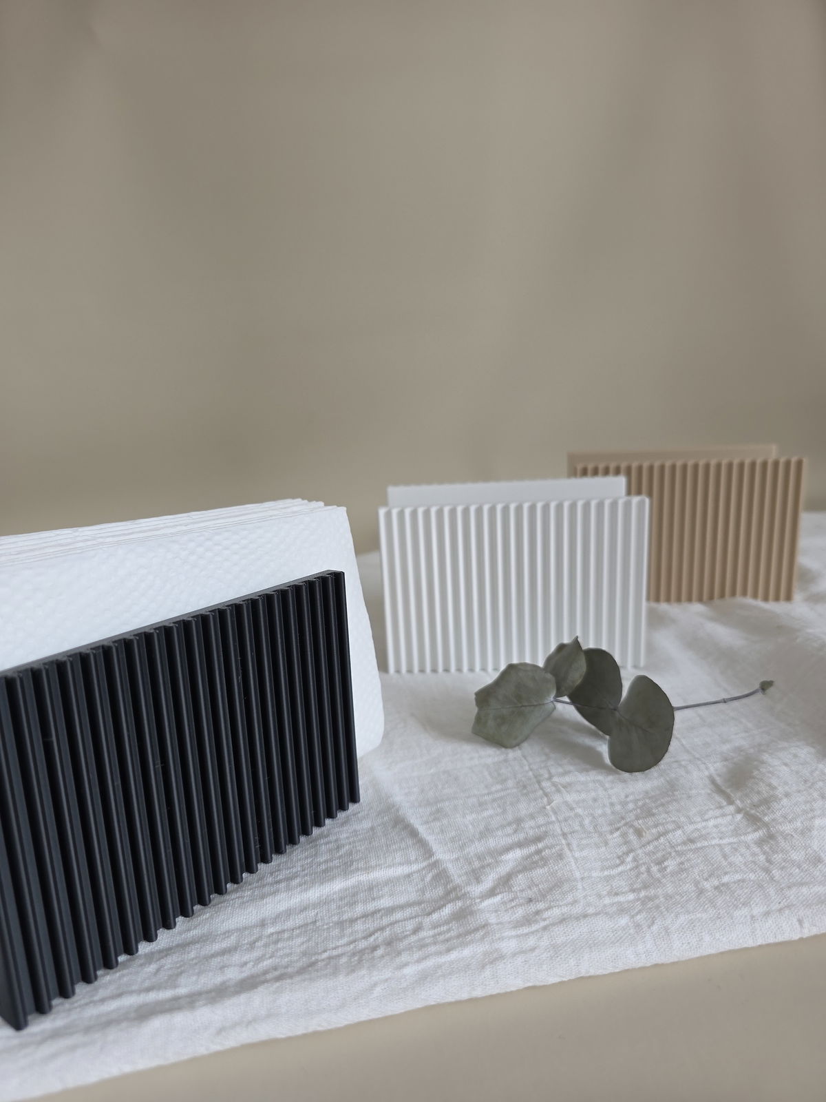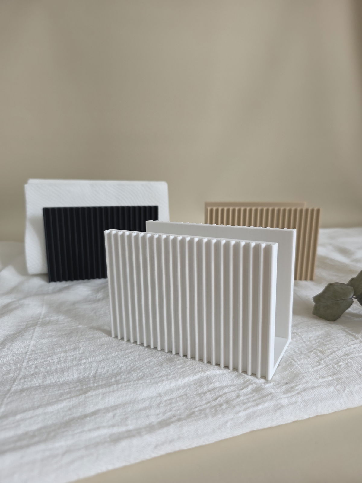 Servilletero realizado en impresion 3D, fabricado con PLA (es un poliester termoplastico biodegradable, derivado de fuentes renovables)