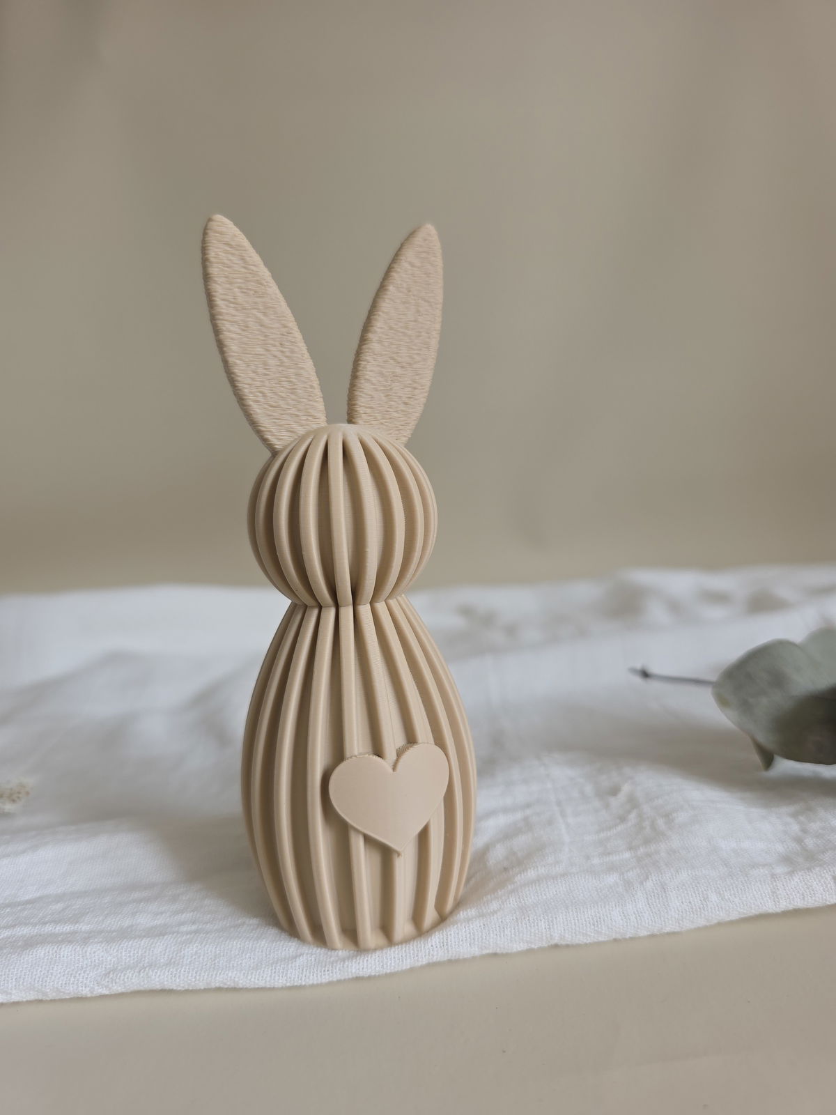 Conejo realizado en impresion 3D, fabricado con PLA (es un poliester termoplastico biodegradable, derivado de fuentes renovables)