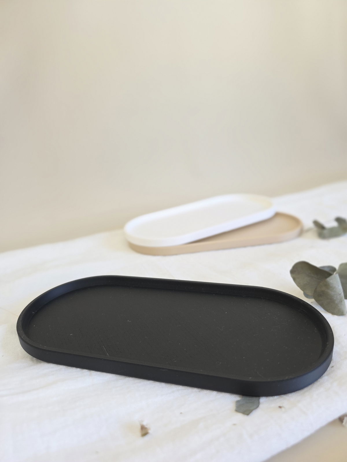 Bandeja realizada en impresion 3D, fabricado con PLA (es un poliester termoplastico biodegradable, derivado de fuentes renovables)