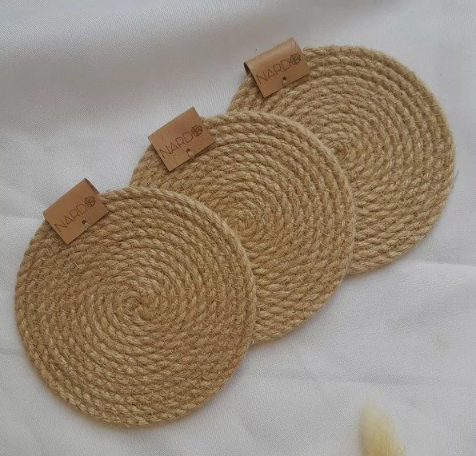 Posavasos combinados de soga de yute.